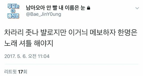 ㅅㅂ 배진영 맨날 뽑았었는데 팬들이 극성맞네 저런 애들이랑 같이 덕질했다가는 피곤해질듯~이제 진영이 안뽑음