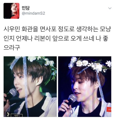 시우민 어제도 화관 거꾸로 씀ㅋㅋ