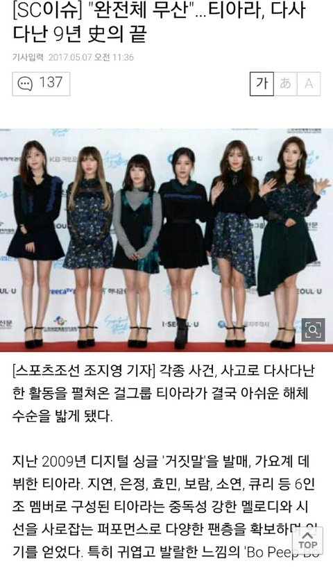 지금 티아라의 멤버 보람과 소연이 탈퇴를 하고 이번 앨범을 끝으로 티아라가 해체를 한다는 식의 기사들이 마구 올라왔습니다. 기사의 내용은 MBK측에 유리한 방향으로 쓰여졌고 의도대로 보람과 소연이 배신자라며 많은 욕을 먹고 있습니다.