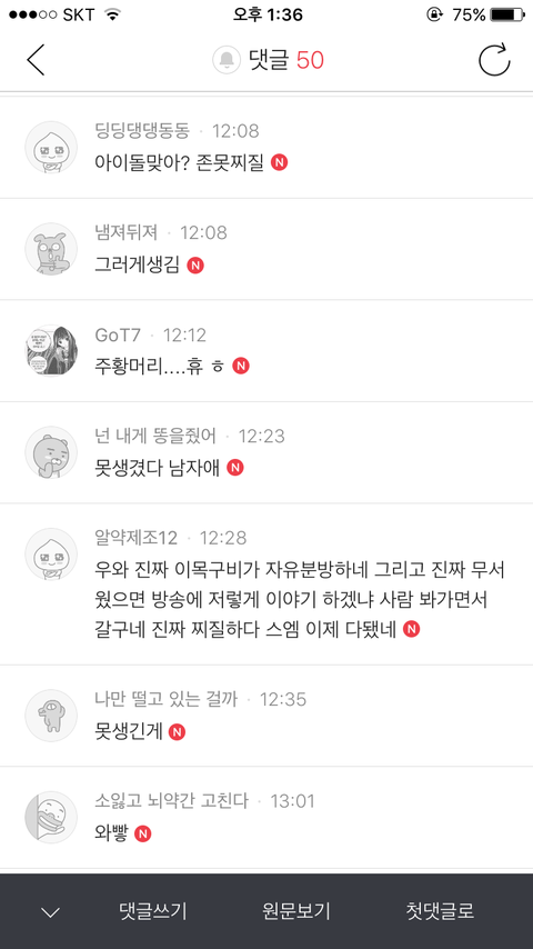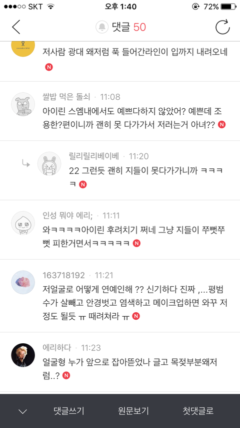 내가 글에서도그렇고 대댓글로도 누누히말해주는데, 현실부정하면서 -보고싶은대로만 보고 듣고싶은대로만 들으면서 망상속에빠져살지말았으면함 글고 이상한핑계대면서 글쓴이(나)보고 어그로라고 뭔 별욕을 다하는데 진짜 현실파악이 시급한거같다