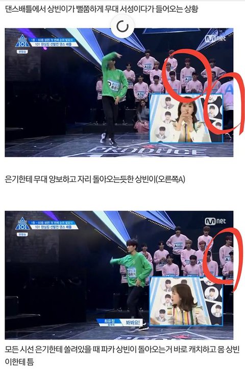상황 설명을 하자며 프로듀스101시즌2 5화에서 쉬어가는 타임식으로