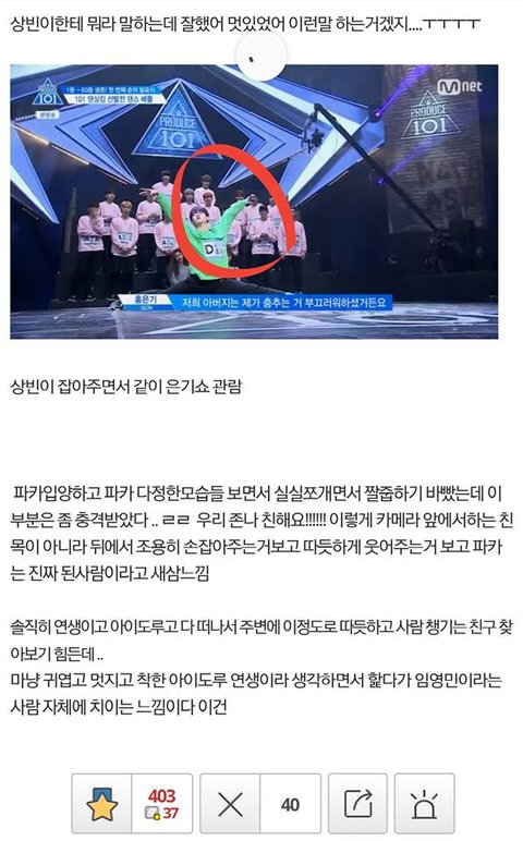 글 출처는 디씨앤사이드 프로듀스101갤러리, 사진은 사진에 있는대로