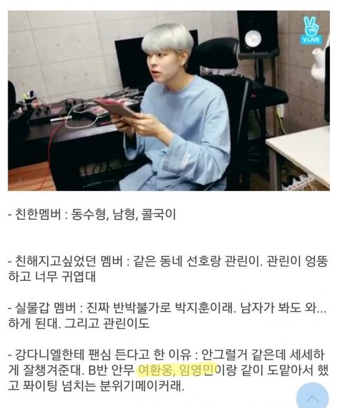 RBW 여환웅 연습생과 임영민 연습생도 선생님 역할을 했다는 피셜이 뜸