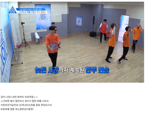 랩포지션임에도 안무도 딸 줄 알고 춤도 잘 추는 강다니엘 연습생의 주도로 연습을 시작함