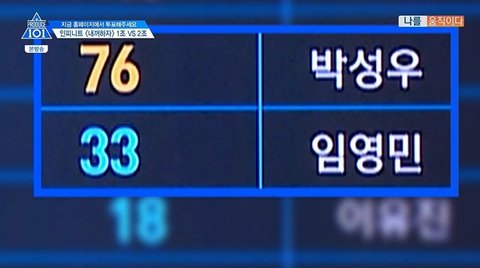 본인이 가르친 박성우 연습생은 76표를 받음