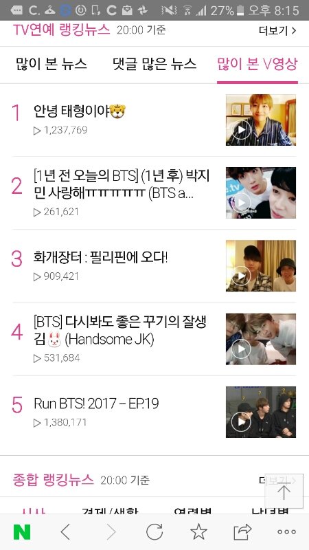 네 e버에서 많이본 태앱순위 1위부터5위까지 방탄이다ㅋㅋㅋㄱㅋㅋㅋ 새삼대단
