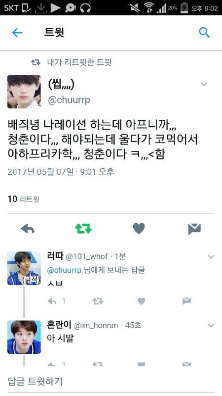 혹시 주변에 박지훈 안좋아하는애 있음?