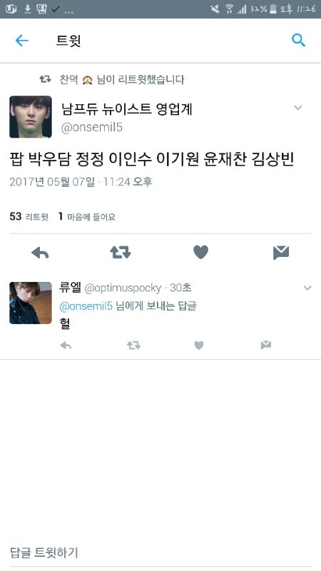 나 윤재찬 짱좋아하는데 힝