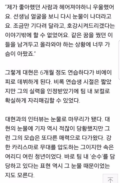 대현이는 데뷔전에도 힘들었겠지만...데뷔후에도 힘들었겠지....ㅠ 티에스...ㅂㄷㅂㄷㅂㄷㅂ...이젠 정말 꽃길만 걷자 영원히 노래해줘 대혀나