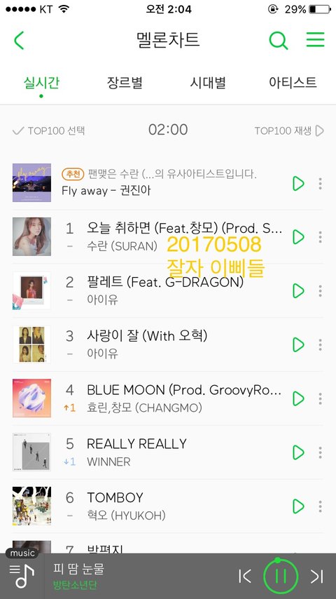 2시차트 오취1봄16피49낫64코94 봄둥이5계단 올라갔어!!!!