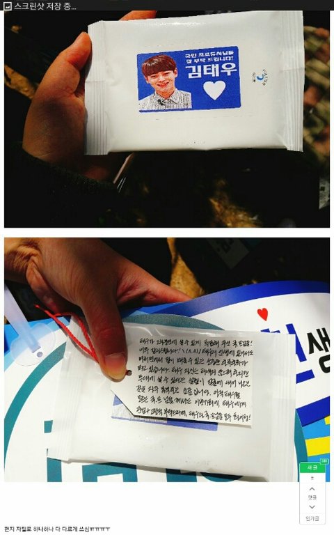 본론은 첫 무대방청때도 태우 부모님께서 태우 사진 붙인 물티슈 나눔 하셨었거든 ㅠㅠ? 그때도 소수 사람들이 트위터로 올려줘서 막 난리 났었는데