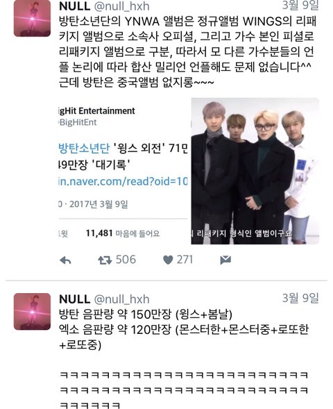 누구랑은 다르게 우린 이미 71만장 "단일"로 팔았거든