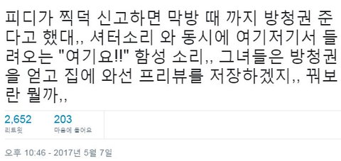 1. PD가 현장에서 대포신고하면 막방 방청권 준다고 공지함 -> 현장팬들이 주변 대포들 신고