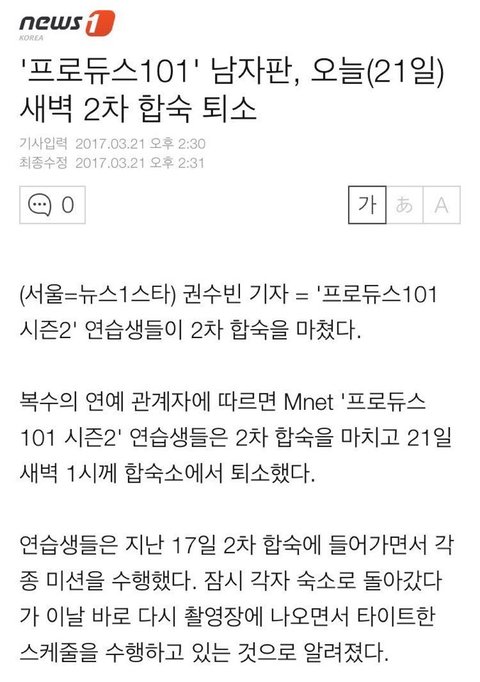이게 오늘 공식적으로 뜬 엠넷 입장임ㅇㅇ합숙 기간 동안만