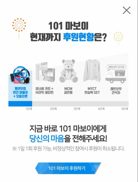 이건 프듀 나온 연습생들 각각 후원해주는거 있는데 1단계씩 달성하면 인증영상 뜨는데 얘는 달성하고 6일이 지난 지금까지도 영상 사진 아무것도 올라오지 않고있는중