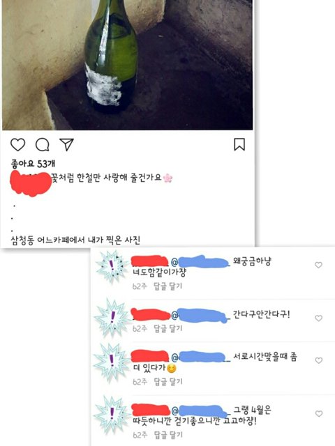 그 주요 집적여자 중 하나인 학교동기 L과의 댓글 캡처입니다ㅎ