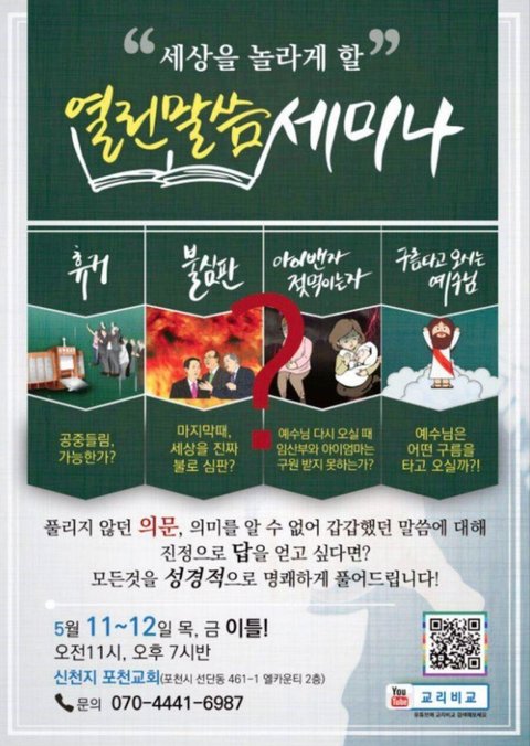 신앙에 있어서 궁금한 점을 해소해 드리고자 이번에 신천지에서 무료 세미나 를준비했습니다. 두둥!