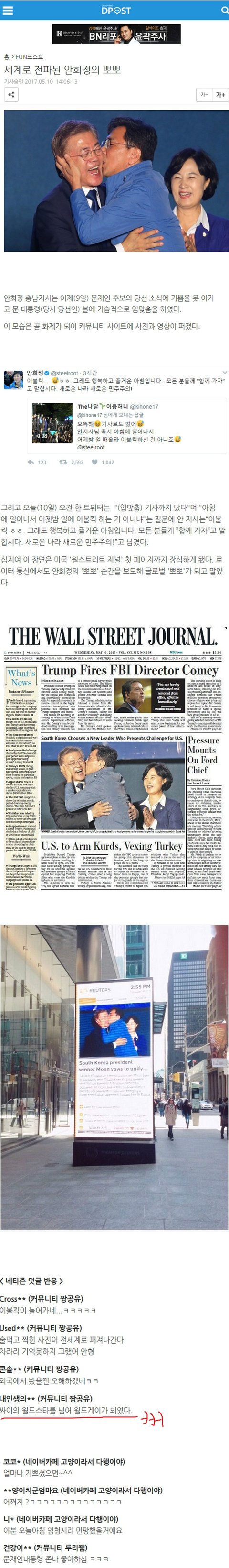 세계로 전파된 안희정의 뽀뽀