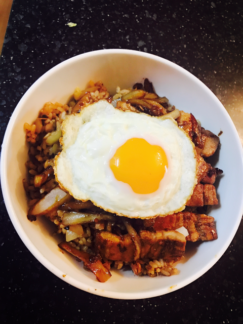 남은 삼겹살로 만든 내맘대로 덮밥 계란 톡 터트려서 한입