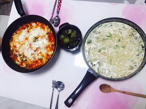 아는언니집놀러가서 만든 크림파스타와 토마토스파게티
