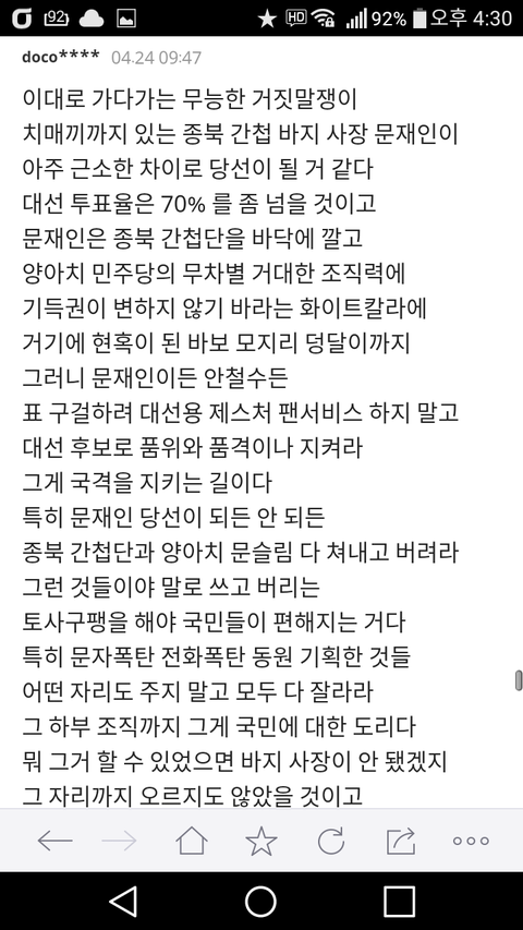 대통령이나 그 정당이 무능하면 우리나라 망한다