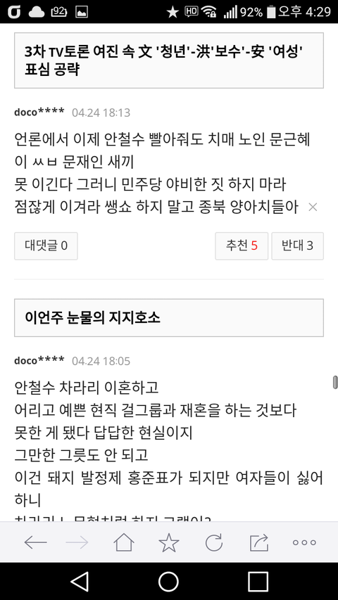 여자들 특히 20대부터 40대까지 문재인 지지가