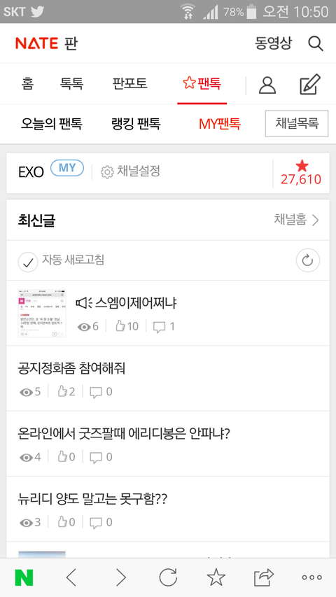 팬톡 검색 보기