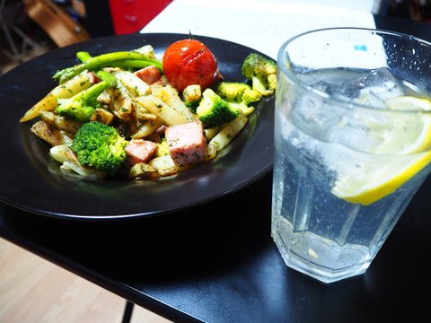 한바탕 거사를 치른후 남은 재료로 볶볶~ 성공리에 마친 집들이를 자축하기 위한 진토닉과 함께~ 브로콜리가 너무 좋아요ㅋㅋ