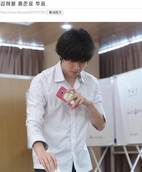 김희철 사전투표한 게 취재진 카메라에 포착되었는데 말이야 투표함에 투표용지를 넣으려 하는데 눈에 띄는 도장 위치가 어느 후보를 찍었는지 예측할 수 있겠는거야