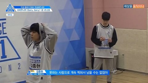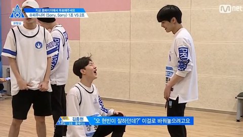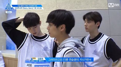 자기보다 키가 작은 연습생을 앞으로 보내는 황민현