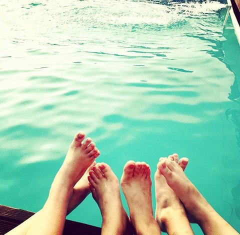 펜션 밖 수영장에서 친구랑 산책좀