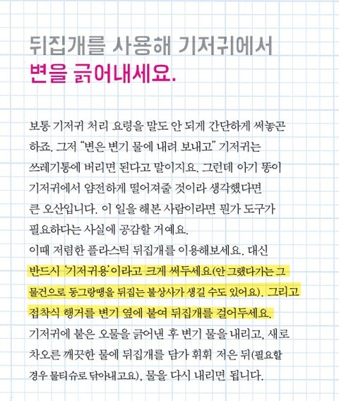 똥폭탄을 좀 더 수월하게 처리하는 팁! 뒤집개를 이용해볼까요?