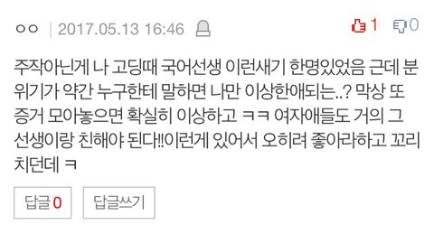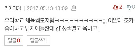 자격지심이니 질투니 내가 선생님한테 호감이있니 하시는데 질투할이유도없고 예쁜애들 까내릴이유는 더 없어요...