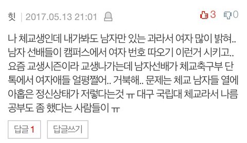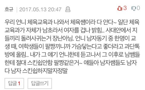 본인들이 당해보지않았다거 주작이라하시는분들이 계시고 제가 여럿댓글을쓴다고 주장하는분들도 한두분 계시네요,, 저는 사실만을얘기했으며 저희학교뿐만아니라 일반적 체교과는 남초라서 그런게많다 라는 댓글도 많이있고 다른학교의 다른 과목 선생님 사례도 많이 적어주셨네요.. 조언들 하나하나 잘 읽어보았어요 진짜 한번만 더 그럼 교육청에 신고하던가해야겠네요., 감사합니다!