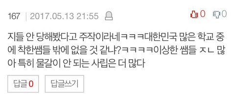 여러개 더 있는데 그건 학생들이란 있던일이아니라 선생님이랑 다른 여선생님들 사이에 있던 문제라서 언급은 굳이 하지않을게요ㅠ