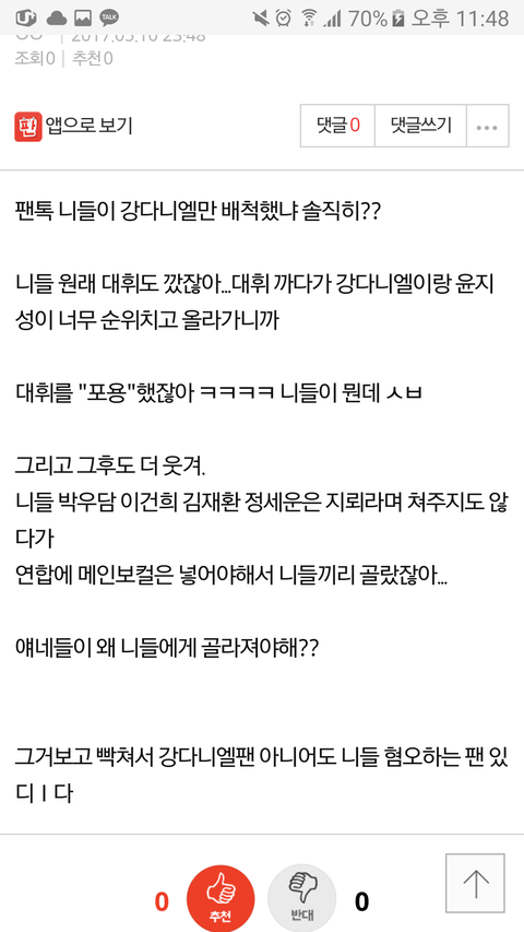 근데 그게 거의 이간질(새벽반애들이 플디를까고 뭐 다휘를깐다나) 이럼서 조카깜