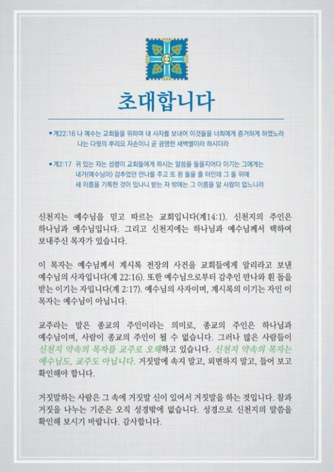 그래서 신천지 포천교회에서 여러분들을 위해 값없이 귀한 계시말씀으로