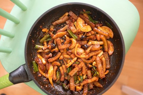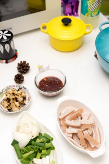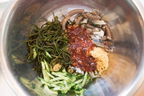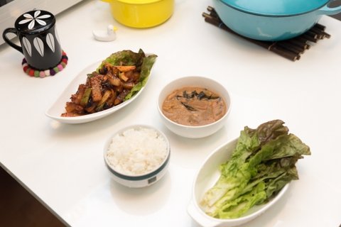돼지껍데기와 뿔소라가 들어간 돼지껍데기볶음에 된장찌개!!