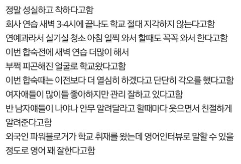 성실하고 원칙 규칙 잘 지키는데다 피곤해도 학교생활 꼭 꼭 한대요.