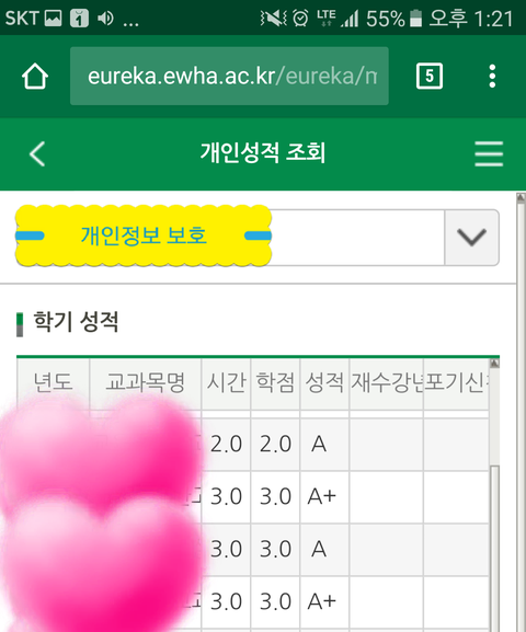 참고로 쓰니 작년 2학기 학교 성적이야..
