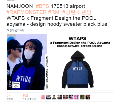 퉅윗터 에서 남준이 옷 이름 복붙해서 어디껀지 검색해서 (영알못) 파는 사이트? 거기 들어갔는데 ㅋㅋㅋ