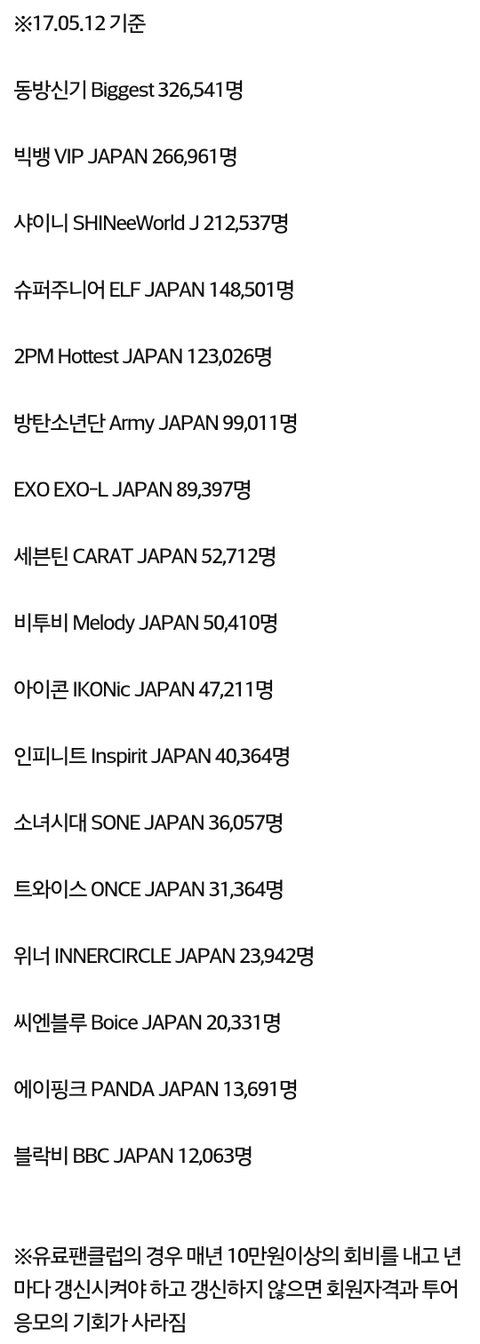 현재 K-POP가수 일본 현지 유료팬클럽 순위.JPG