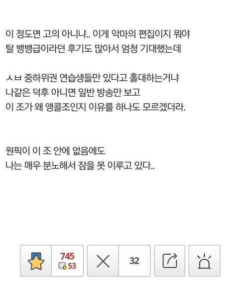 최상위멤 없는 조인데 앵콜받음 ➡ 같곳