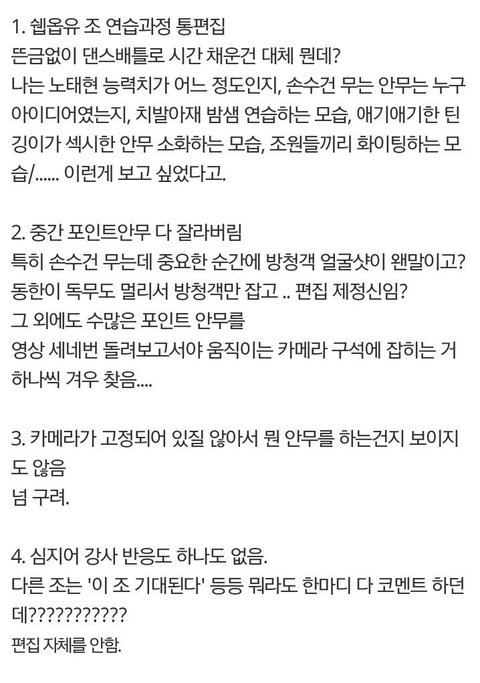 3. 멤버들 각각 주목파트 있는데 하나도 안나오고 다 자름