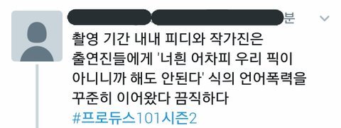 아니;; 그러면 시즌2 만들지를 말았어야지;; 왜 피디랑 작가들이 욕하고 난리치는거임?? 솔직히 지금 순위변동 엄청 심하고 연생들 멘탈 다 깨졌는데;; 마이크 못단 연생들도 엄청 많고;; 이딴식으로 할거면 시즌2 피디랑 작가들 다 갈아치워야된다고 생각한다