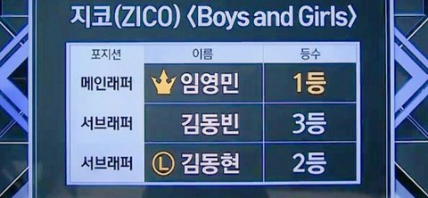 12등이야ㅠㅠㅠㅠㅠㅠ 지난 주 27등에서 무려 15등이나 올랐어ㅠㅠㅠ방송보면서 영민이 힘들어보여서 맴찢이였는데 마지막에 순위보고 개 기뻤다ㅠㅠㅠㅠ진짜ㅠㅠㅠ