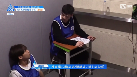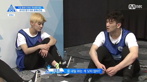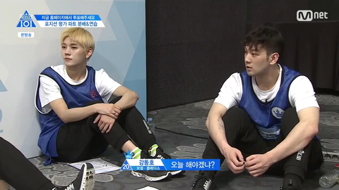 보컬트레이닝을 마치고 강동호랑 정세운만 연습실에 남음