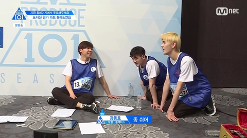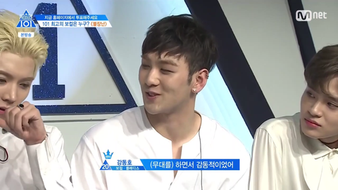 많이 도와줬데잖아.. 아까 세운이가 동호한테 말했지 자기는 대휘나 민기처럼 표정이나 끼가 없어서 걱정이라고. 이 부분을 강동호가 많이 도와줬다는 뜻인데