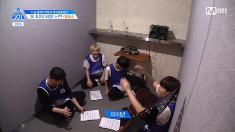 옆 조가 화음을 맞추고 있자 정세운이 우리도 맞춰볼까요?라고 물어봄