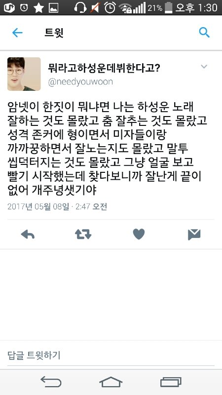 하..짐짜 너무 예쁘지 않니??한자 부수 케미까지 완벽해.. 이렇게 뜻도 예쁜 하성운 이라는 이름가지고 있는 얘를 위드갑이라고 불리게한 준영이 ..엎드려 뻗쳐ㅂㄷㅂㄷ (별명은 구름이얌)